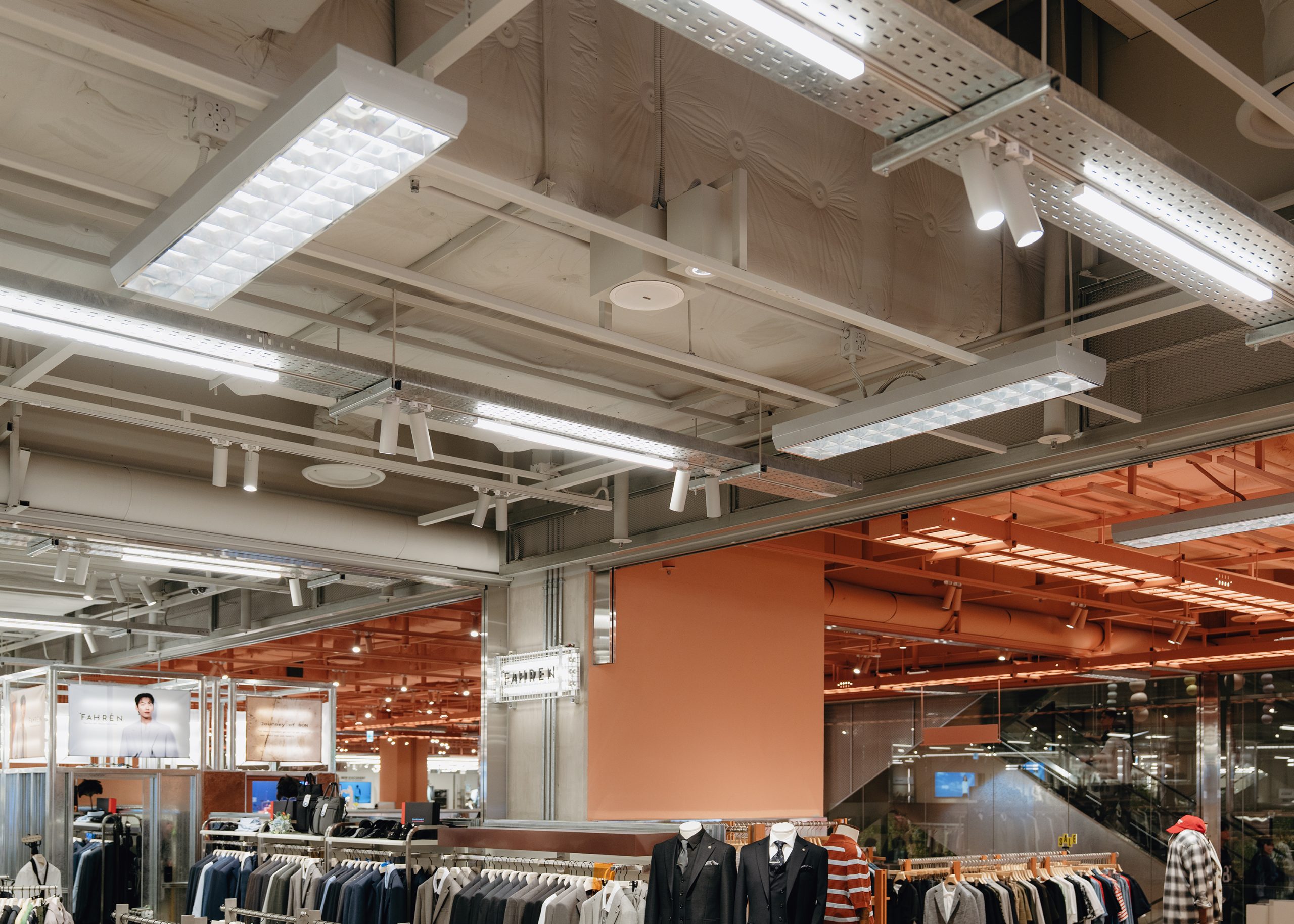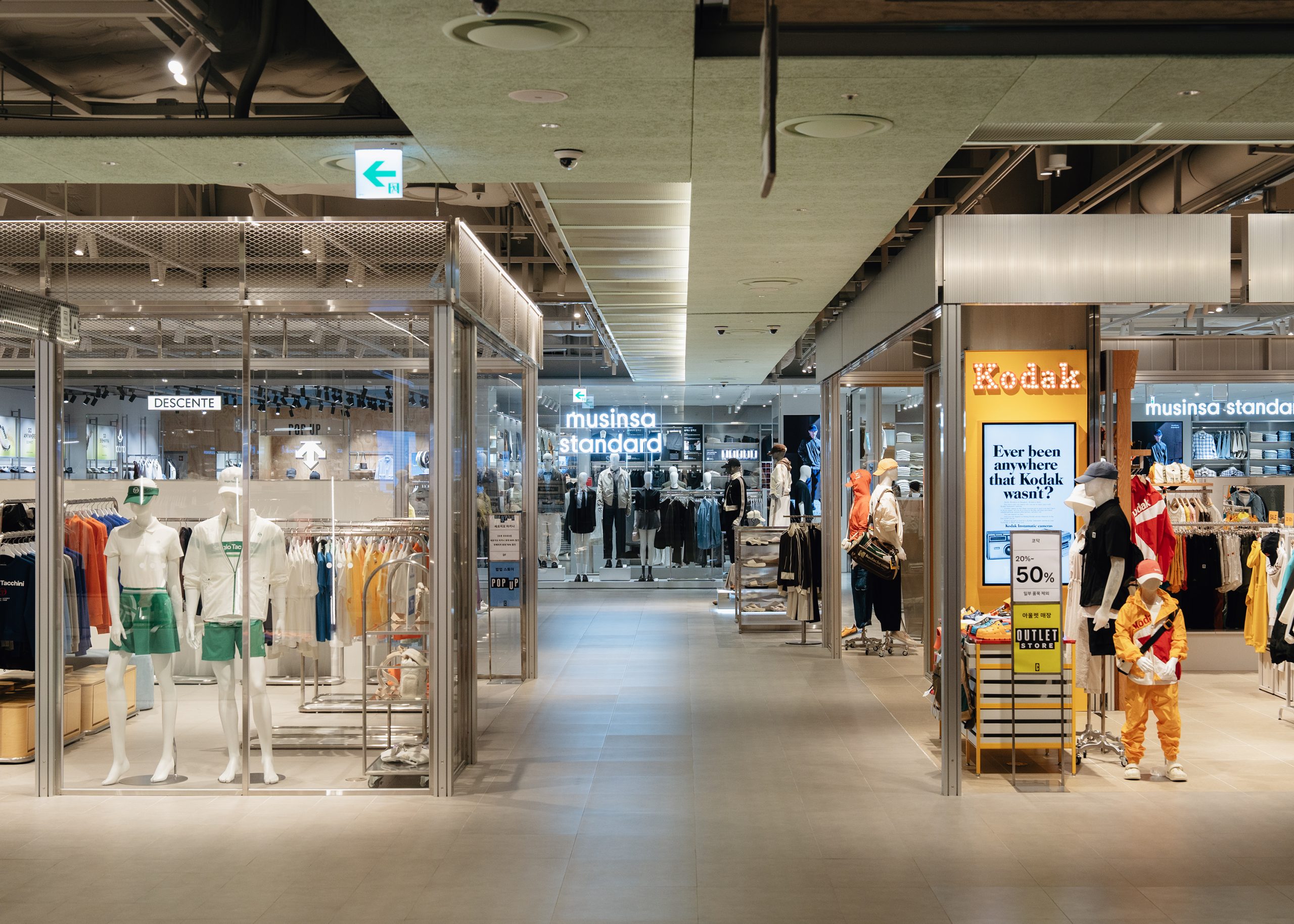 김현구 새로운 비즈니스 모델을 찾으면서 지역 상권 특성을 중점적으로 고려하고, 커넥트현대 청주만의 아이덴티티를 담을 수 있는 공간을 구현하고자 했어요. 국내 유수의 설계 및 시공사를 찾아다니며 특히 고려한 바는 공간을 크리에이티브하게 해석하고 표현할 수 있는 점이었어요. 함께 지역을 조사하면서 청주가 산업단지로 발전하고 있는 지역이라는 점을 주의 깊게 보았고, 이에 착안해 전 층을 연결하는 하나의 맥락을 ‘인더스트리’로 잡았어요. 인더스트리 요소를 공간 디자인의 관점으로 재해석하되 백화점의 성격과 이곳을 이용하는 이용객을 고려해 조금 더 따스한 방향으로 보완하도록 했습니다. 4층 청주행복상회 매장 주변을 보면 난로 연통 같은 벌크들이 지나가고, 파이프 배관이 에스컬레이터 주변으로 이어지죠. 3층에서는 성격이 크게 다른 남성 패션과 아웃도어, 엔터테인먼트의 구역을 핑크 존과 그레이 존으로 바닥 및 천장의 컬러로 구분해 콘트라스트를 주었습니다. 조명에도 인더스트리얼 요소로서 알루미늄 하우징 조명을 사용했어요. 이렇게 산업 현장에서 흔히 접할 수 있는 알루미늄, 아연, 강판 등의 합리적 소재를 디자인 언어로 자유롭게 사용해 인테리어로 독특하게 풀어냈습니다. 그 결과 청주의 지역적 특성을 살리면서 기존 백화점이나 쇼핑몰에서는 구현하기 어려운 모습을 고객분들에게 보여줄 수 있었던 것 같아요. 뉴 엔터테인먼트 몰이라는 콘셉트에 맞게 핵심 타깃이 달라졌다면, 공간의 하드웨어 역시 함께 변화해야 하는 게 브랜딩 관점에서 중요하다고 봐요. 2층은 스트리트 캐주얼과 스포츠를 소개하고 있는 만큼 힙스터의 골목길 같은 느낌을 연출했어요. 매장 사이사이 골목길을 탐험하듯 지그재그 형태의 동선으로 펼쳐지죠. 전 층이 전체적으로 쾌적하게 느껴지는 건 자투리 공간이나 유휴 공간도 고객의 휴식처로 활용해 확보해두었기 때문이 아닐까 싶어요.
