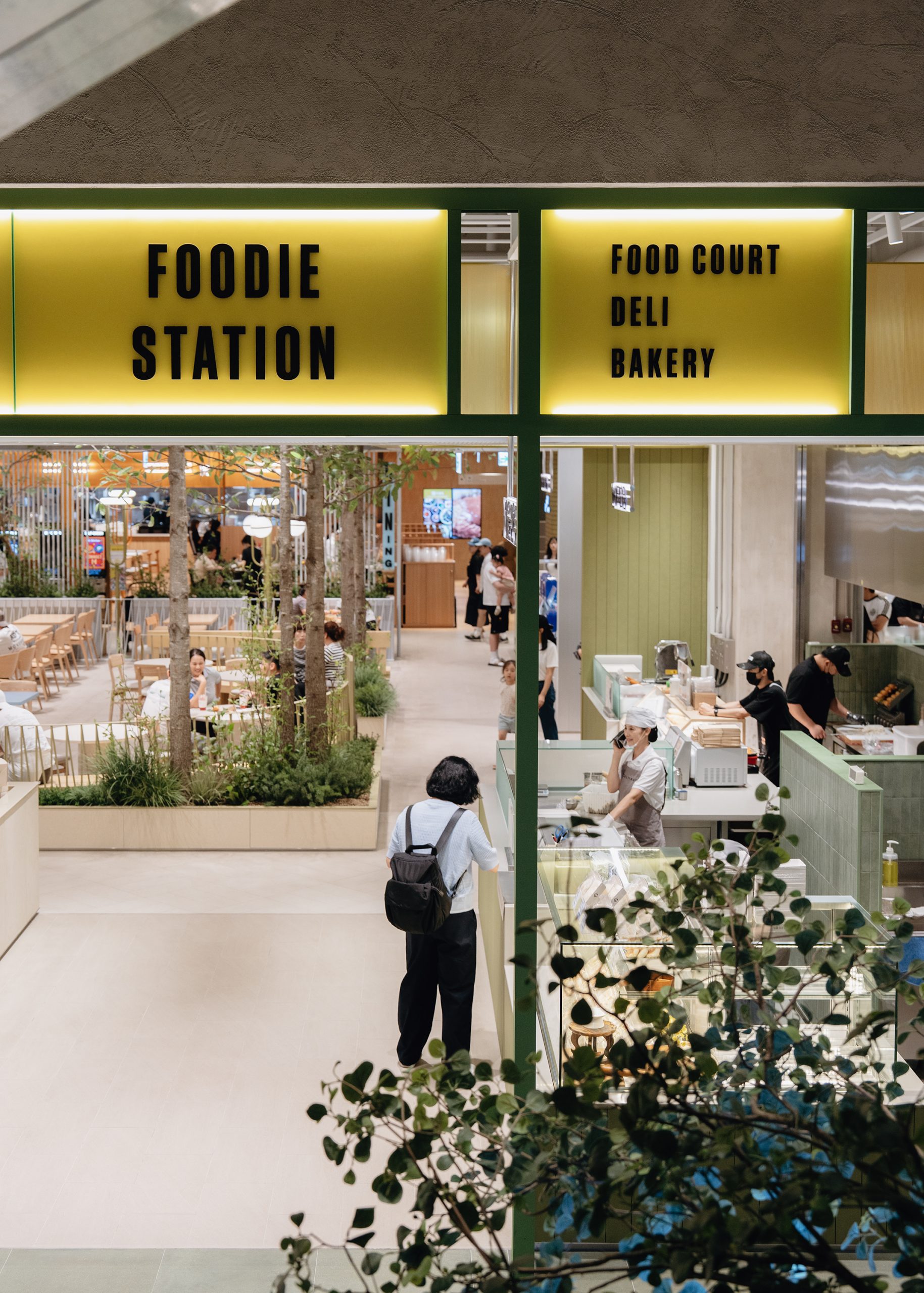 백화점의 첫 인상이기도 한 GF층에 들어서자마자 느껴져요. 식음료를 판매하는 F&B 브랜드의 테넌트tenant 공간을 연결하는 넓은 통로, 유연한 동선, 식음료를 편하게 먹을 수 있는 쾌적한 좌석까지.