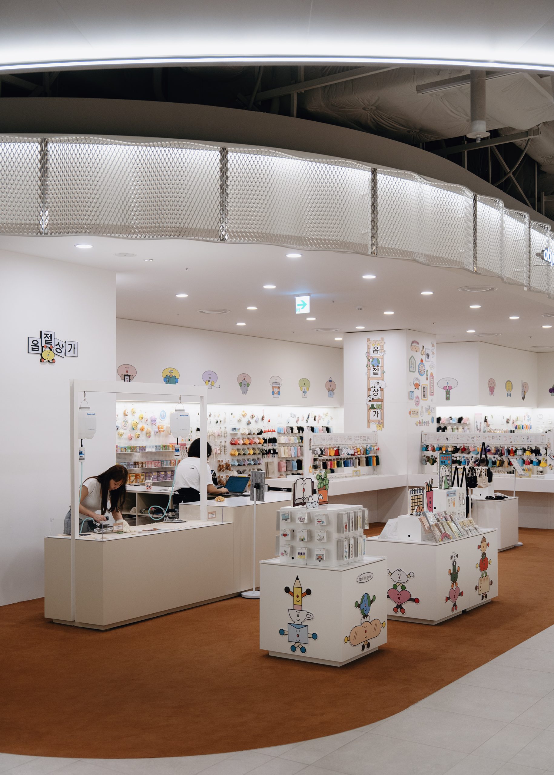 4층에 자리한 청주행복상회는 청주 지역 청년 작가, 청주 로컬 브랜드와 협업해 로컬 캐릭터와 지역 특색을 담은 콘셉추얼한 공간으로 운영한다. 로컬문화협동조합인 여유리에가 운영하며, 캐리커처 및 컬러링 유료 체험과 더불어 청주만의 감성을 담은 굿즈를 소개하고 팝업을 진행한다.